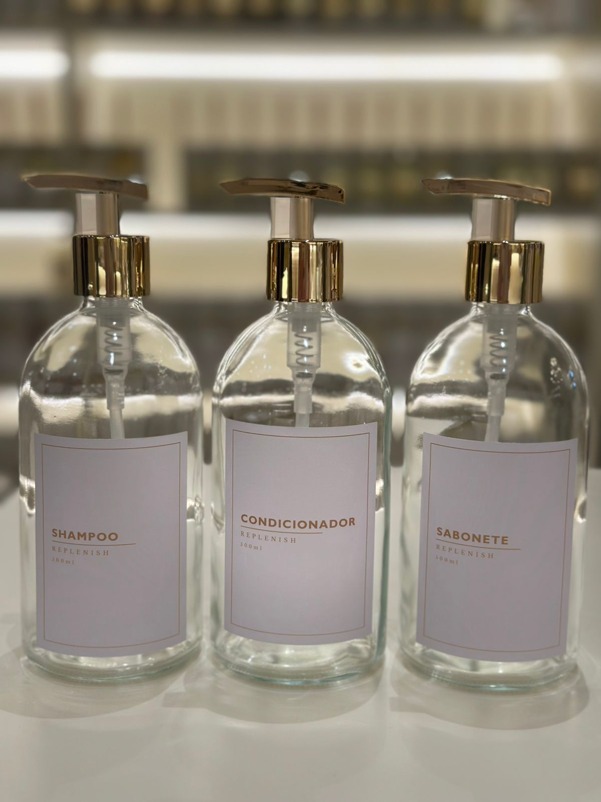 Cada frasco possui capacidade de 500ml e vem com tampa pump, garantindo fácil dosagem e evitando desperdícios. O design moderno e minimalista combina com qualquer estilo de decoração, tornando seu ambiente mais clean e sofisticado.