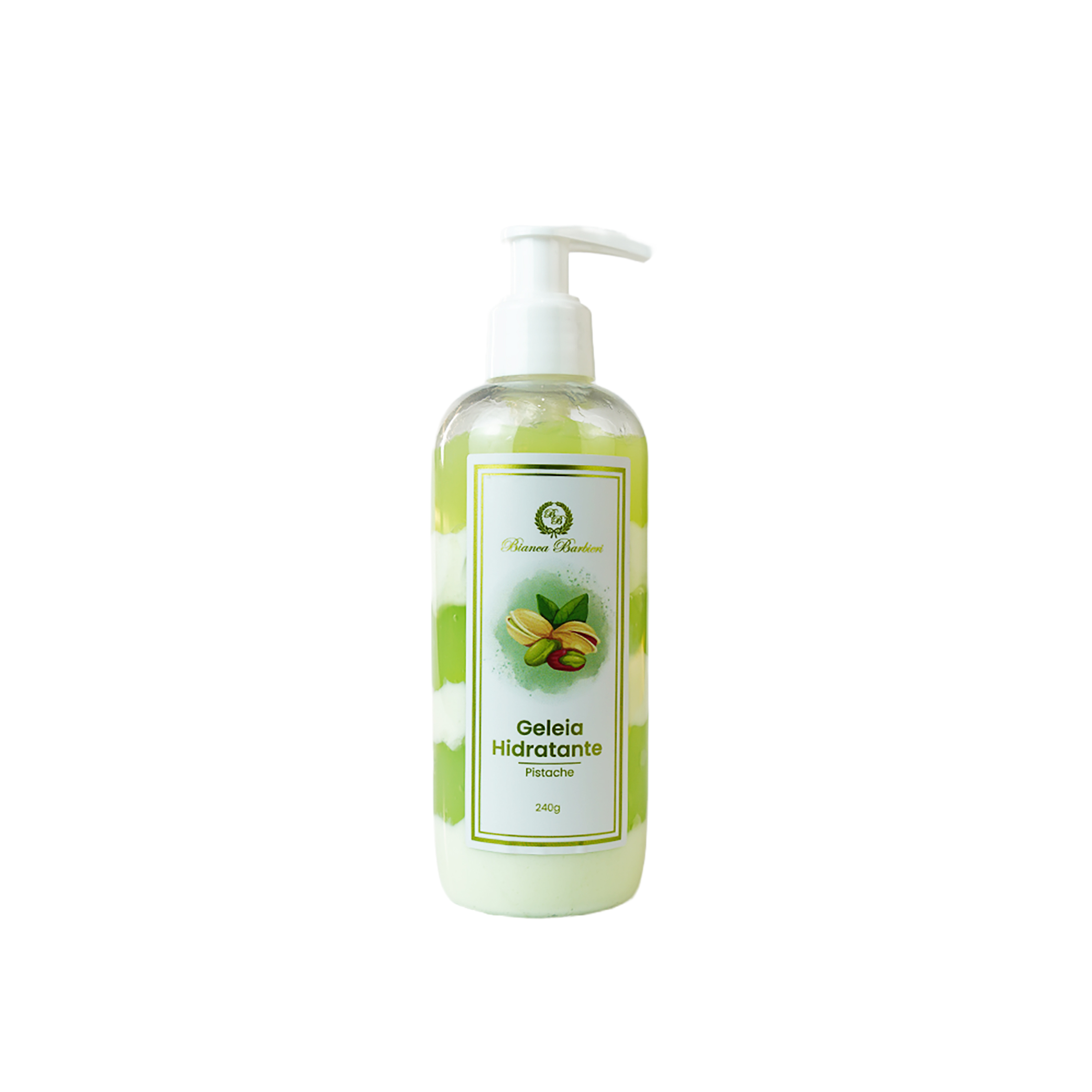 A Geleia Hidratante Pistache Bianca Barbieri é um gel creme corporal que transforma o cuidado diário em um momento de indulgência. Com textura leve e refrescante, ela desliza suavemente sobre a pele, promovendo hidratação imediata e deixando um rastro olfativo elegante e envolvente, inspirado na cremosidade das nozes e na doçura gourmet.
